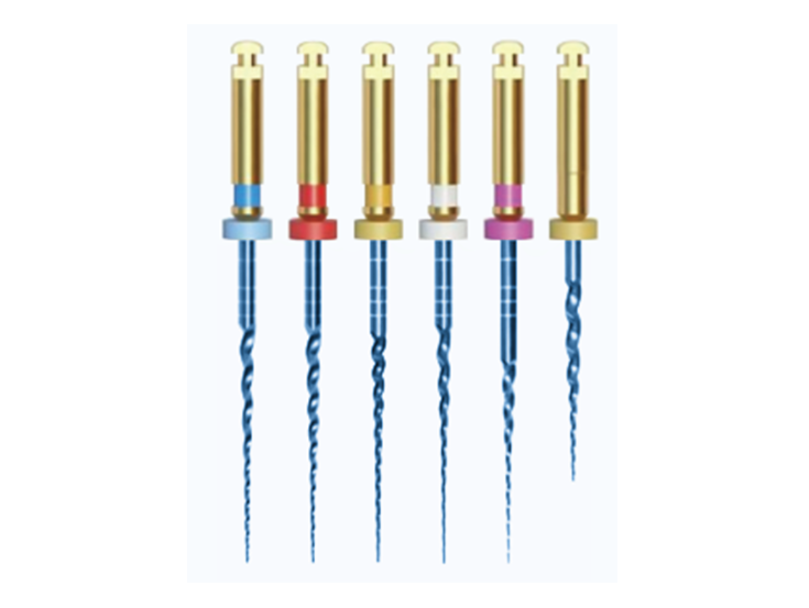 EKS-Taper Files are heat treated progressive tapered blue files with convex triangular cross section, 6 pcs in the sequence, suitable for curved root canal